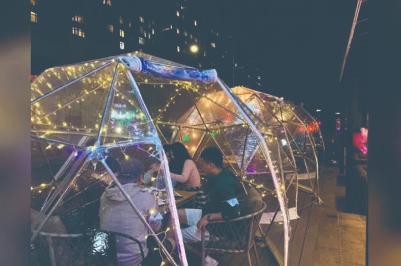 中餐馆“不二酒馆”的泡泡屋既保暖、又安全