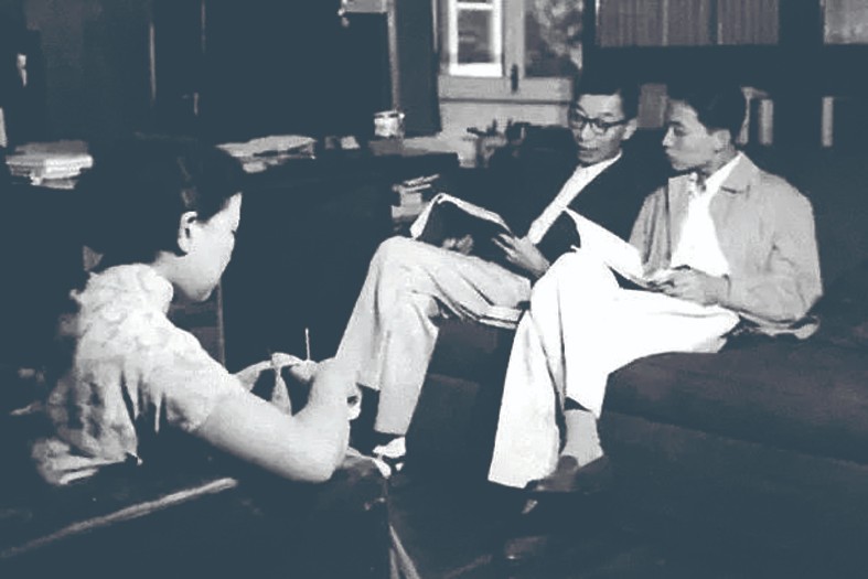 傅雷、朱梅馥夫妇与长子傅聪在书房