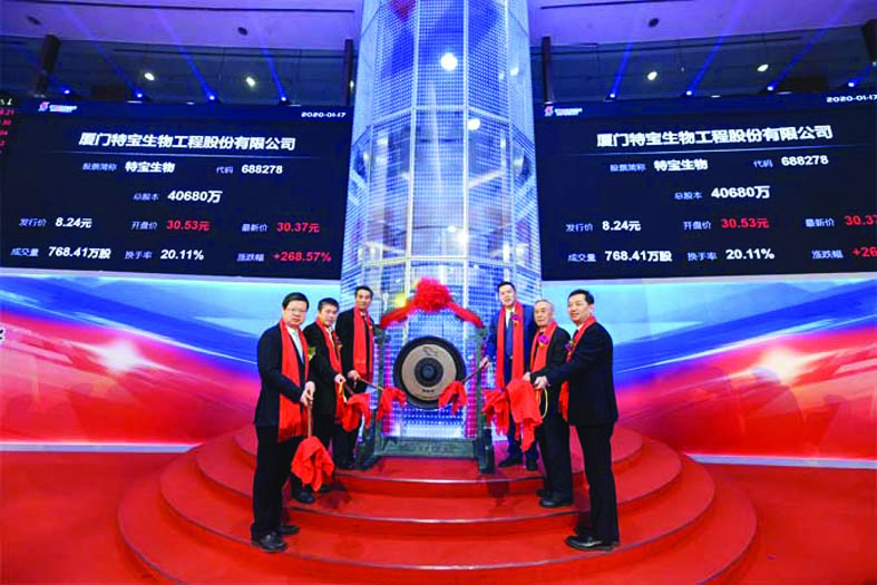 厦门科创板“第一股”——厦门特宝生物工程股份有限公司(以下简称“特宝生物”)于2020年1月17日正式在上海证券交易所科创板挂牌上市。特宝生物同时也是福建省首个成功登陆科创板的生物医药公司。
