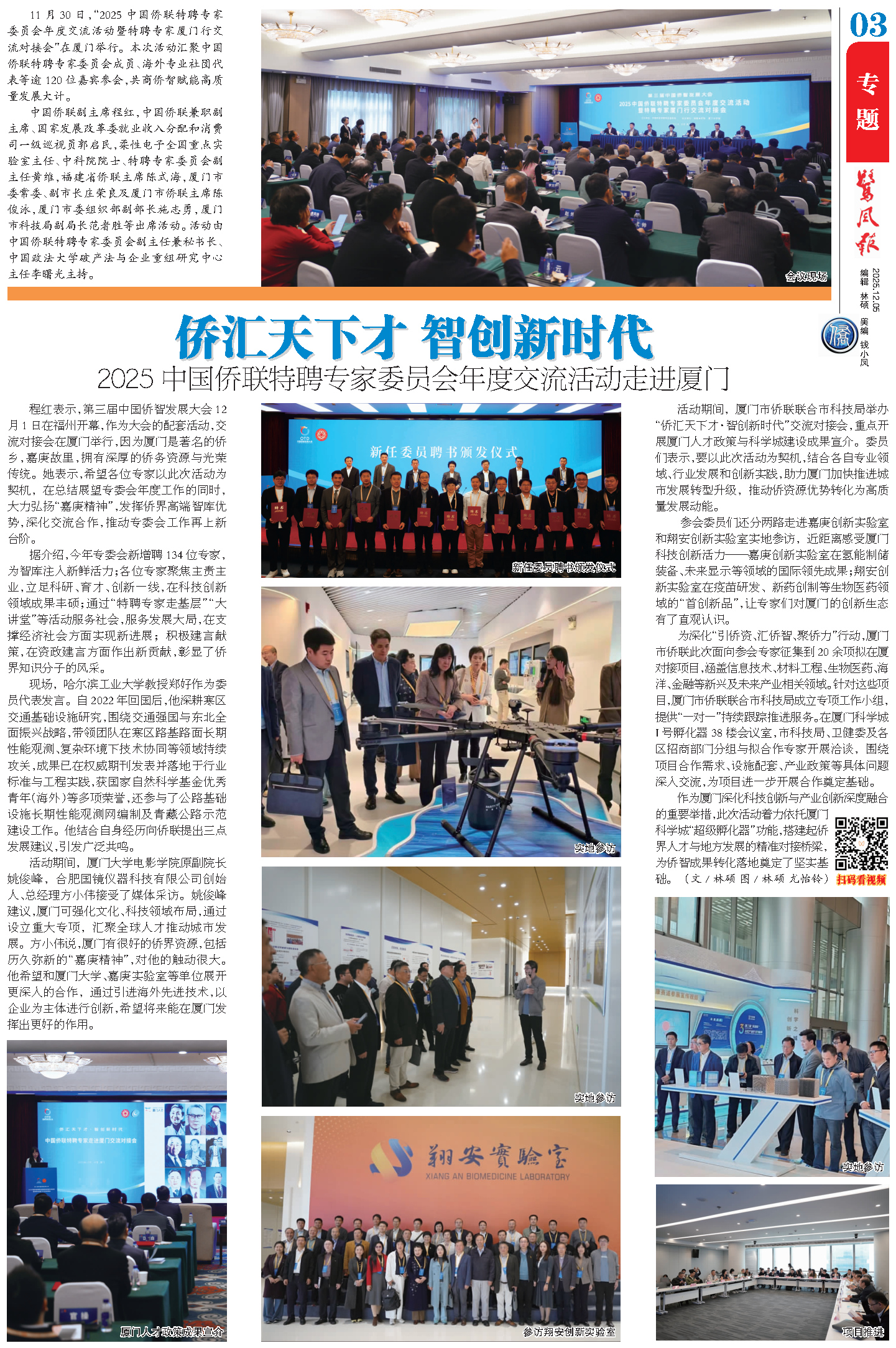 11月30日,“2025中国侨联特聘专家委员会年度交流活动暨特聘专家厦门行交流对接会”在厦门举行。本次活动汇聚中国侨联特聘专家委员会成员、海外专业社团代表等逾120位嘉宾参会,共商侨智赋能高质量发展大计。