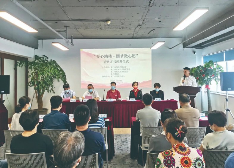 本报讯 爱心的潺潺细流,可汇成江河湖海。6月17日,“爱心助残·圆梦微心愿”捐赠证书颁发仪式在厦门华建大厦举行。