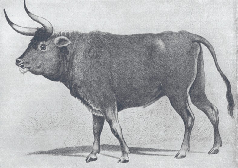 牛是哺乳动物中最后出现的一个类群,起源于原始的羚羊类,随着进化过程,体形演变为高大而健壮,四肢粗壮,达到顶点的便是非洲野牛属和野牛属。牛类的共同特点是雄兽和雌兽头上都有表面光滑的角,并且紧靠着枕骨的两侧长出,角的基部远远地分开,吻边没有毛,尾巴较长,末端有簇毛串,眼睛前面和趾间没有臭腺,雌兽有4个乳头。(南阳唐王府博物馆)