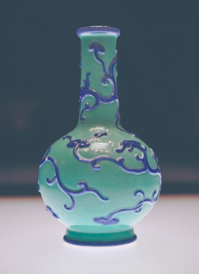 色釉瓷又称颜色釉瓷,是依靠釉水色彩的变化来装饰瓷器的。通常在釉料之中调整各种微量元素的含量,就能达到改变釉色的目的,如铜红、钴兰、铁黑、铅绿等。在釉料里加上某种氧化金属,经过焙烧以后,就会显现出某种固有的色泽,影响色釉成色的,主要是起着色剂作用的金属氧化物,此外还与釉料的组成、料度大小、烧制温度以及烧制气氛有着密切的关系。