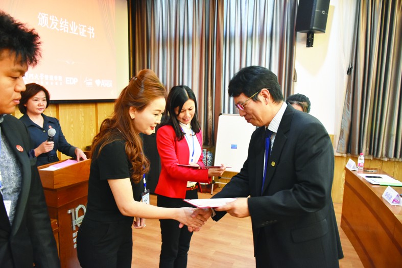 在厦门大学的课程结束后,学校与厦门市侨办为研修班学员们举行了厦门段结业仪式暨研讨交流会,何秀珍、厦门大学管理学院院长叶建明为学员颁发结业证书,厦门市委统战部副部长陈俊泳主持了厦门段结业仪式。
