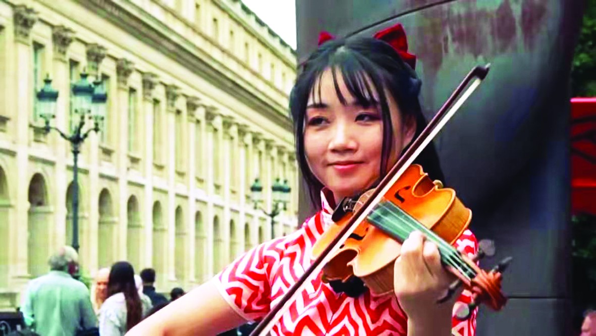 在法国波尔多街头,常常可以看到一位身着传统中国服饰的女孩,她用手中的小提琴演奏一首又一首动人的乐曲。每当旋律响起,总能吸引路人驻足聆听。