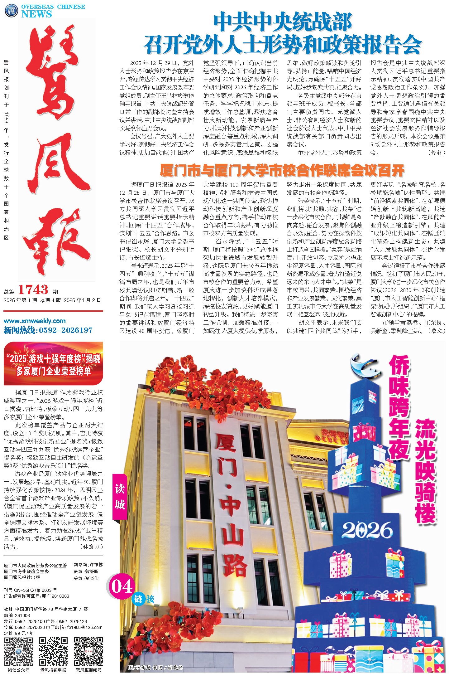 发布时间:2026-01-05作者:林露虹点击量:110鹭风报1743期01版 头版