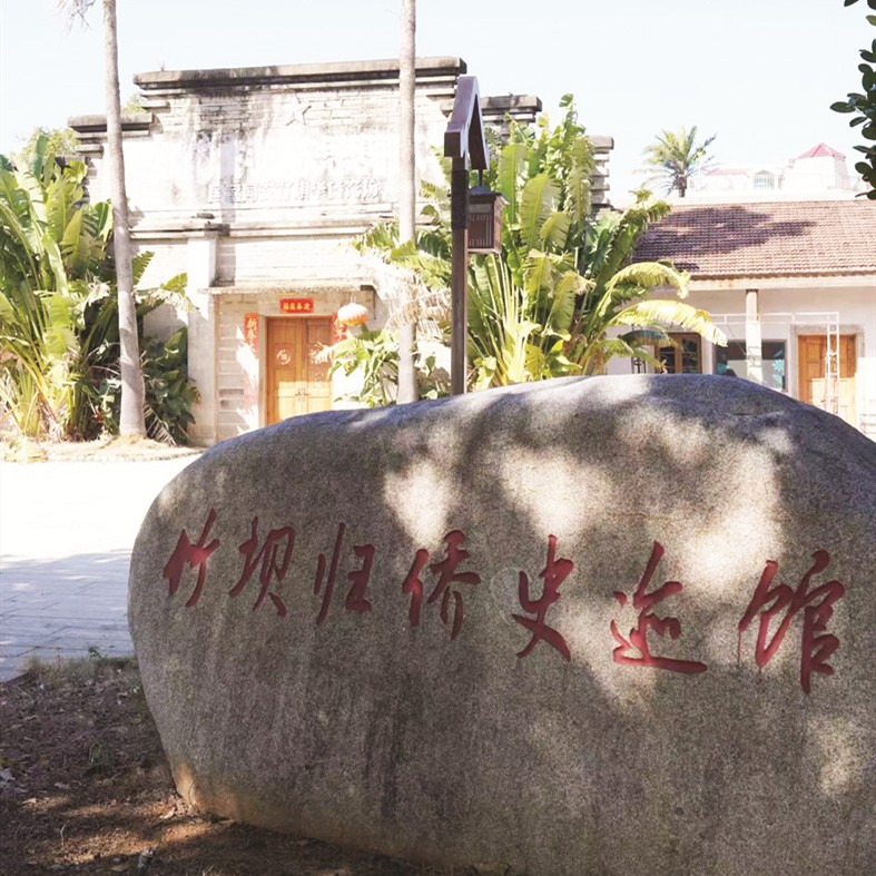 史迹馆内设“爱侨护侨”“扎根竹坝”“同心筑梦”三个展区,分别讲述了归侨们“筑梦异邦、归根故土、融合发展、铸魂圆梦”的故事。从昔日荒山野岭,到如今的南洋风情旅游度假区,这是一段属于归侨们的奋斗史、创业史。