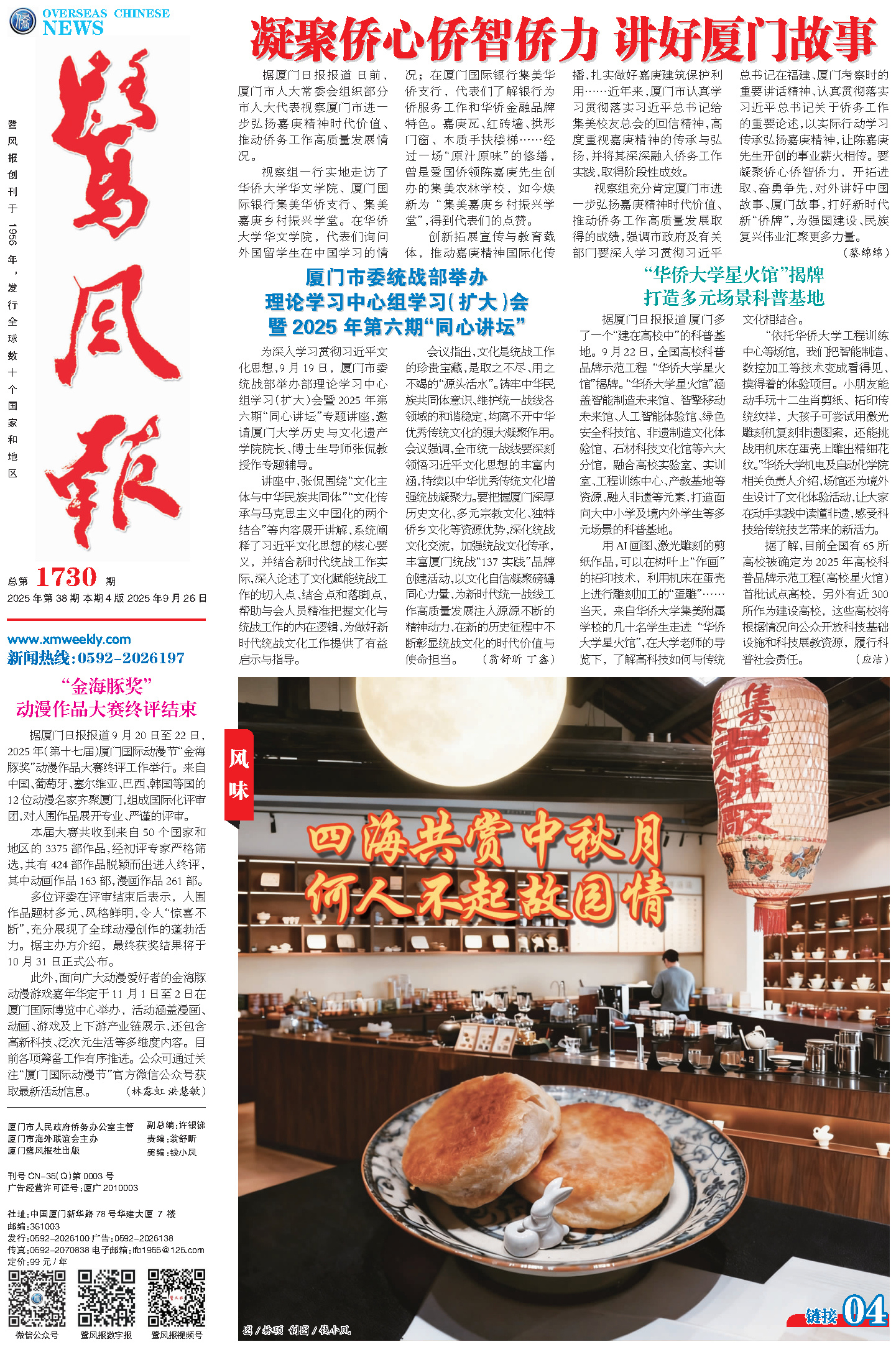 翔安侨风盛 海韵乡愁浓 漫步翔安区新店街道、香山街道、大嶝街道 第十期“四海归鹭”博士大讲堂在厦举办 2025年厦门市统一战线理论政策 信息宣传培训班举办