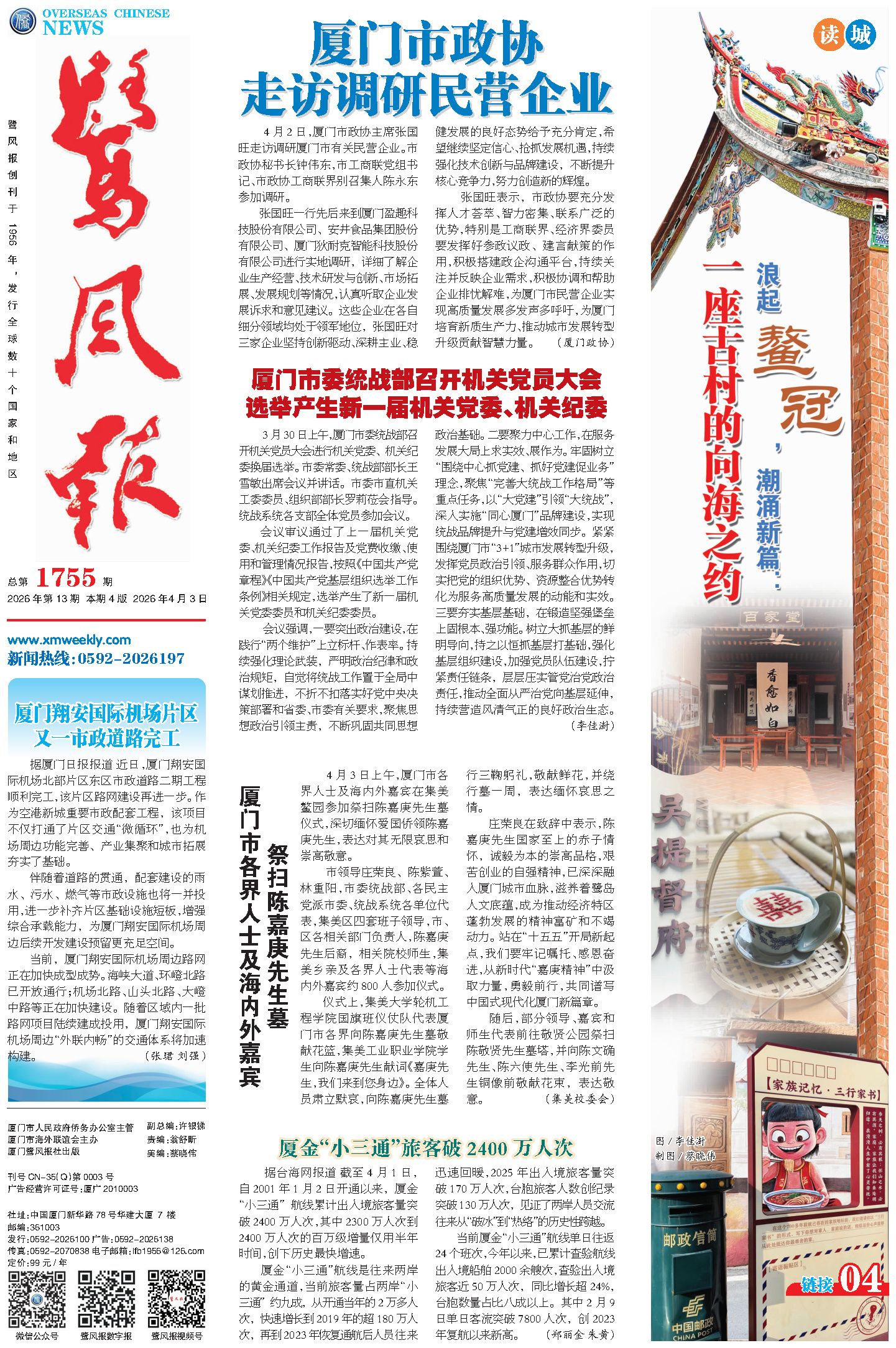 四海同心聚翔安 侨智侨力绘新篇 第十二届世界同安联谊大会 暨翔安招商大会在翔安举行 侨味跨年夜 流光映骑楼 中山路解锁跨年活动,侨乡风物共谱城市乐章 侨批展上新:走进海上丝绸之路侨批珍品展