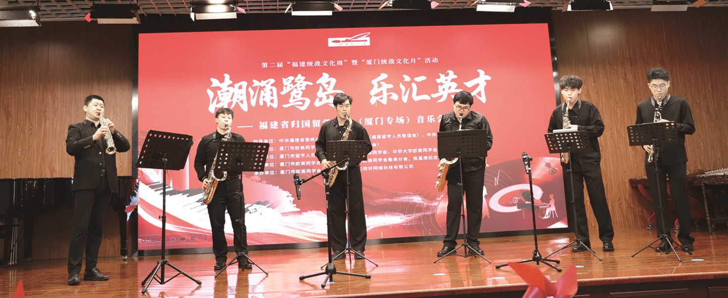 10月12日下午,厦门陈嘉庚纪念馆内琴瑟和鸣、歌声激荡,“潮涌鹭岛 乐汇英才——福建省归国留学人员(厦门专场)音乐会”在此倾情上演。本场音乐会为第二届福建统战文化周暨厦门统战文化月系列活动之一,旨在以音乐凝聚海归英才共识,赓续留学报国传统,展现归国留学人员的艺术才华与爱国情怀。音乐会由福建省委统战部、福建欧美同学会、厦门市委统战部指导,厦门市欧美同学会(厦门市留学人员联谊会)主办。