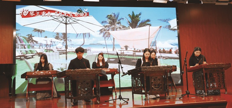 “我们尝试用现代乐器弘扬传统文化,也用民间艺术诠释民族精神。”旅俄双博士、钢琴家杨曦婷与大提琴家王淼共同带来的法国作曲家圣桑的著名作品《天鹅》旋律优美动人,传递出人与自然和谐共处的东方智慧; 旅德美声歌唱家何昕宇用优美动听的歌喉带领观众《乘着歌声的翅膀》重温留学岁月;旅德双簧管演奏家殷侃与古筝新秀刘一晨合作的《月宫》令人耳目一新——双簧管的空灵交织着古筝的宁静悠远;鹭岛扬琴乐团创新重构《月光变奏曲》,六位青年演奏家指尖跃动的清脆音符,展现着民族乐器的当代生命力;旅美钢琴演奏博士陈光群则用一曲《探戈》展现南美风情。这些艺术创新表明,真正的融合是在吸收外来优秀成果的同时,坚守中华文化的主体性,通过古为今用、洋为中用、辩证取舍、推陈出新,最终实现文化的升华与自信的彰显,达到“以文化人”的境界。